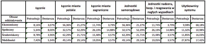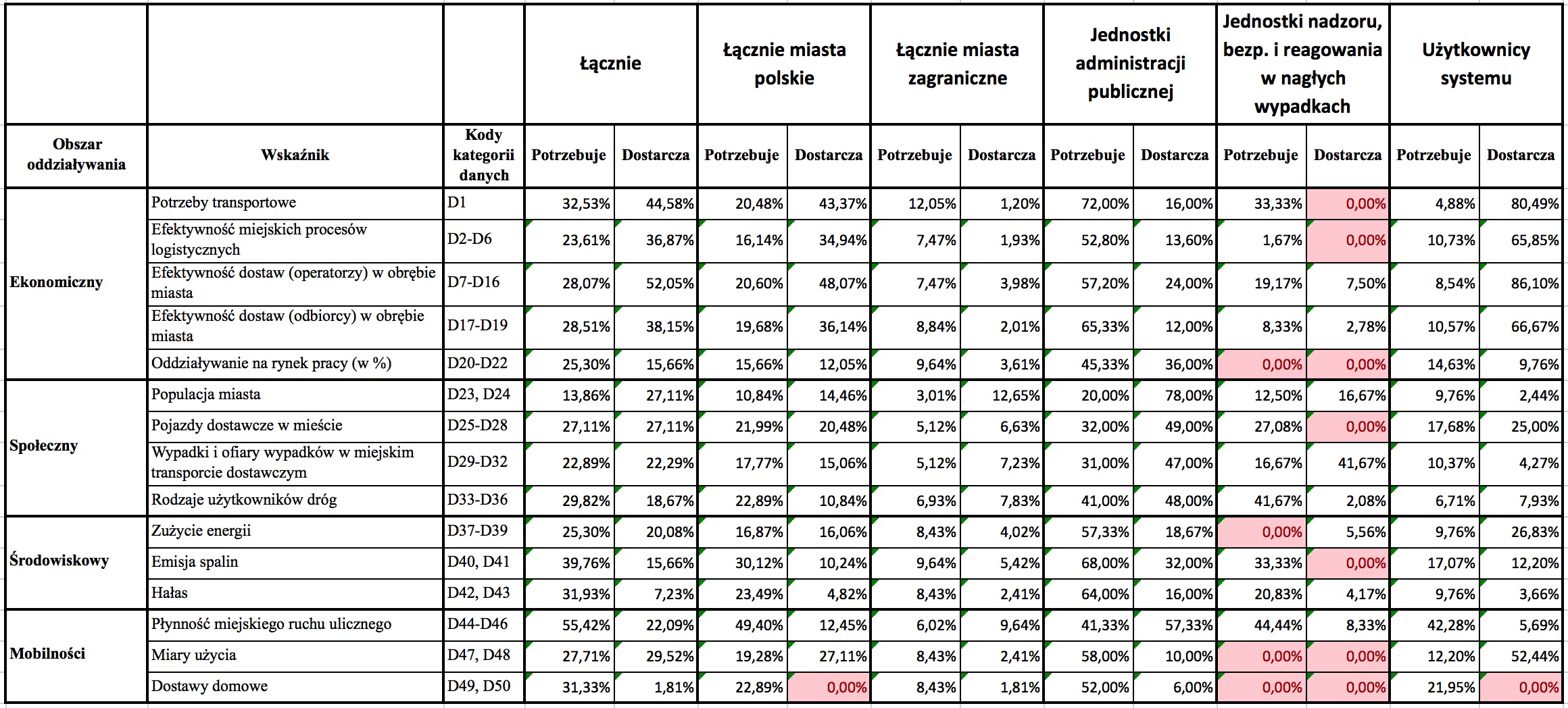 Tabela 2: Wskaźniki obszarów oddziaływania wraz z kodami kategorii danych